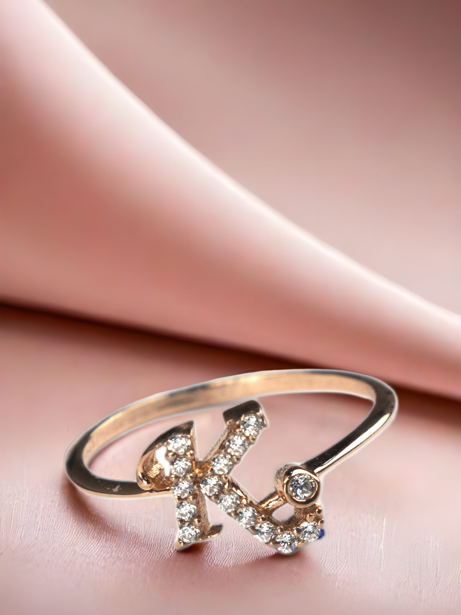 This Alphabet Ring is a delicate silver jewellery piece crafted with Italian rose gold plating and white cubic zirconia. It adds a subtle sparkle and refines the charm to any outfit or jewellery collection.