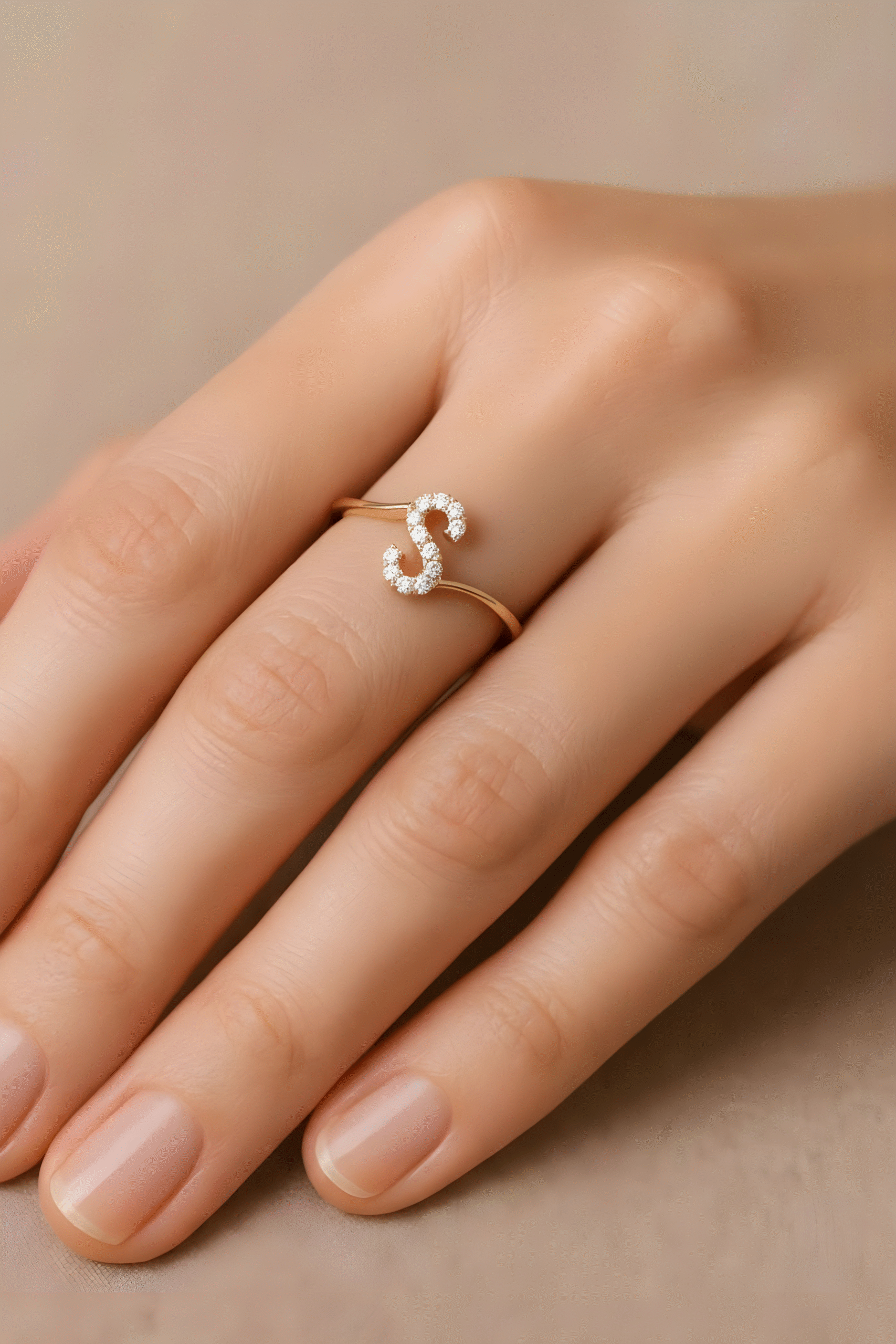 + Free ShippingThis Alphabet Ring is a delicate silver jewellery piece crafted with italian rose gold plating. Featuring white cubic zirconia, this light and simple ring is waterproof and anti-tarnish, perfect for everyday wear. Its understated elegance makes it ideal for stacking or wearing solo, adding a subtle sparkle and refined charm to any outfit or jewellery collection.